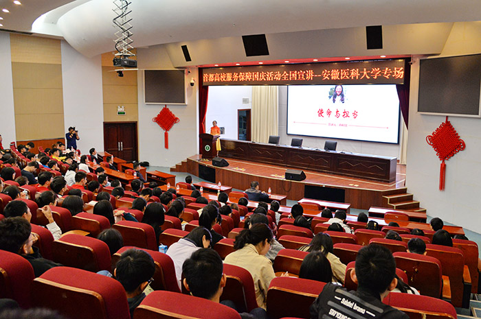 11月8日,首都高校服务保障国庆活动宣讲团走进我校,为我校400余名师生代表带来了生动感动的事迹宣讲。