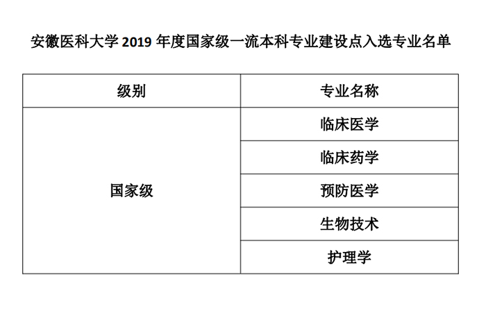 此次我校获批的国家级一流本科专业建设点包括临床医学、临床药学、预防医学、生物技术和护理学共5个本科专业,获批的安徽省省级一流专业建设点包括医学影像学、妇幼保健医学、药学、公共事业管理、口腔医学、生物医学工程、医学检验技术共7个本科专业。