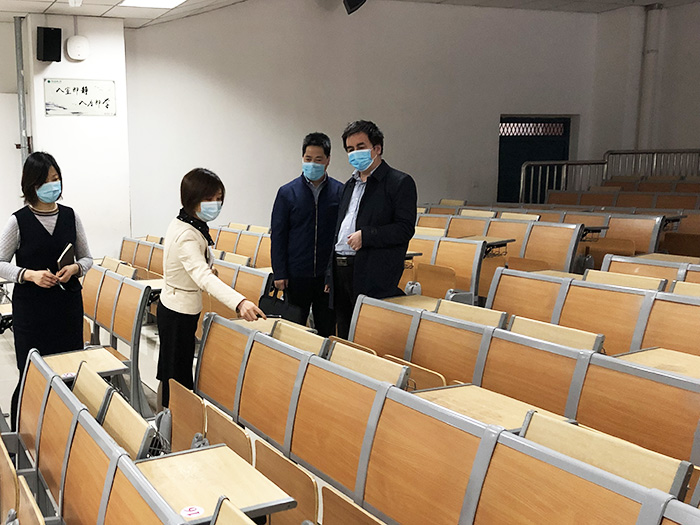 4月29日上午,副校长吕雄文带队,对学生返校前教学场所的情况进行检查。