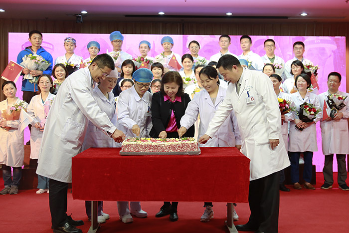 活动最后,曹云霞与该院领导及抗疫队员代表同切象征苦尽甘来的蛋糕,与现场抗疫医疗队员们共同分享胜利归来的喜悦。