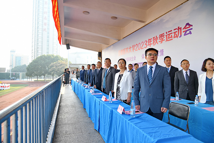 顾家山说,党的十八大以来,习近平总书记高度重视和关心体育事业,我国体育事业蓬勃发展。举世瞩目的2022年北京冬奥会、冬残奥会以及今年成都大运会、杭州亚运会相继成功举办,展示了我国从“体育大国”迈入“体育强国”,体育已成为中华民族伟大复兴的标志性事业。他表示,近年来,学校把体育工作摆在更加突出的位置,深化健康第一的教育理念,坚持以体育智、以体育心,通过全面开展体育俱乐部教学、开设运动康复本科专业、打造运动人体健康中心教学基地、引进国际级运动健将充实体育师资力量、做大做强包含太极拳在内的“新六艺”育人品牌等系列举措,营造了更加健康向上的体育文化氛围,激发了高水平医科大学建设的强劲活力。他强调,一年一度的体育运动盛会,是展示青春力量的大舞台,是推动体教融合的大课堂,更是集中展现师生风采的大聚会。希望全体运动员弘扬中华体育精神,尊重对手、尊重裁判,赛出风格、赛出水平;全体裁判员和工作人员坚持公平、公正原则,恪尽职守,严肃赛风赛纪,为运动员创造积极健康的比赛环境;全体师生文明观赛,积极为运动员加油鼓劲,共同维护赛场秩序、营造健康氛围。