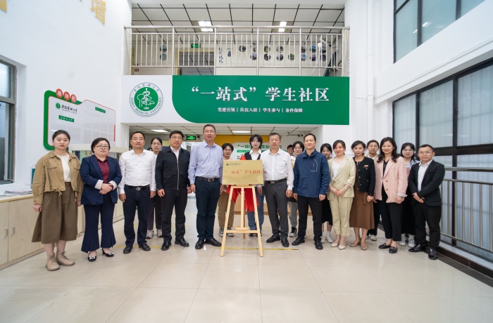 10月26日下午,我校举行“一站式”学生社区揭牌仪式暨“校领导面对面”师生座谈会。校党委常委、副校长肖圣龙出席仪式,并与学工部门负责人为“一站式”学生社区揭牌。