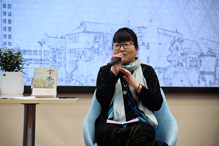 访谈分享会上,乔叶结合自己的成长和生活经历,同与会师生分享了《宝水》的创作故事,将该书的创作契机、创作过程和写作思路等娓娓道来,表达了她对故乡细腻又深厚的情感。她通过分享一个个自己在乡村体验生活的鲜活片段,带领师生们走进宝水村,深入感受这个小村落在新时代背景下丰富而深刻的嬗变,进一步了解了我国现代化乡村建设的新图景。互动环节,乔叶耐心详细地回答了同学们的提问,就如何进行文学创作等答疑解惑。她认为,文学是“人学”,文学动人的地方在于其展现的文字有一种充沛的情感力量,这也是文学的根本力量。此外,写作是从“小我”走向“大我”的一个印证,“一口小井只有打得足够深,才能通向更广阔的地下河”。
