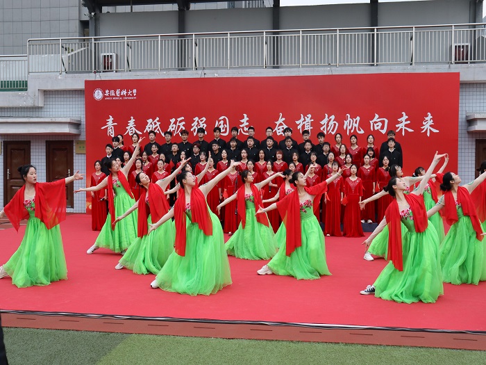 “国旗的映衬下,展现中华民族崛起的坚定决心。中华儿女的心里,点燃国家复兴的炙热激情”。生物医学工程学院2022级智能医学工程专业沈彤在演讲中表达了安医学子们共同的心声。“我的祖国,高山巍峨。雄伟的山峰俯瞰历史的风狂雨落……”国旗下集体朗诵的《祖国啊,我亲爱的祖国》,道出了学子对祖国深情的告白和祖国无限的热爱。“坚定理想信念,厚植家国情怀,奋斗不止,行健不息,乘风破浪,兴校报国,引发现场同学们的强烈共鸣!”