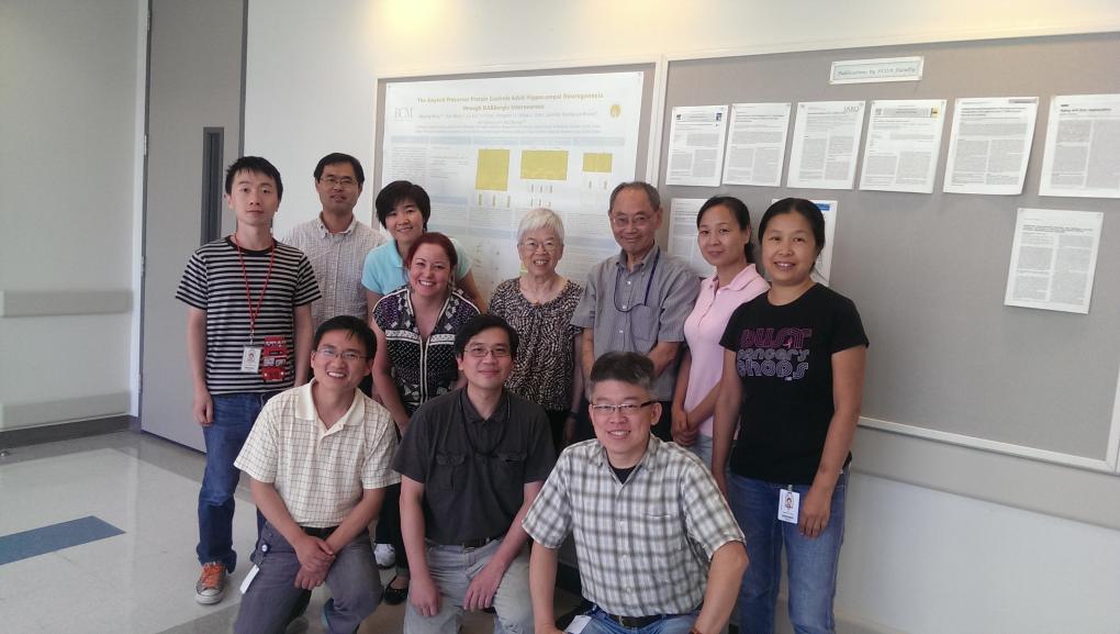 2013年,徐马飞(前排左一)在国外实验室与同事合影。(受访者供图)
