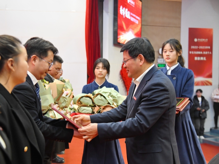 12月28日下午,学校在图书馆第一学术报告厅举行2022-2023学年学生先进集体、先进个人表彰典礼。校党委书记顾家山、校党委副书记谢瑞瑾,副校长余永强、肖圣龙、吕雄文、徐朝阳出席典礼,欧普康视科技股份有限公司副总经理、董事会秘书施贤梅、安徽普盛医疗科技有限公司总经理王鹏举受邀出席表彰活动。