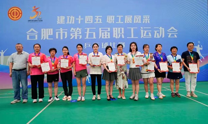 近日,合肥市第五届职工运动会乒乓球比赛在合肥经开区李宁体育园顺利举办,我校职工袁玎代表学校被选拔参加经开区总工会中年组女子团体乒乓球比赛,勇夺团体一等奖。