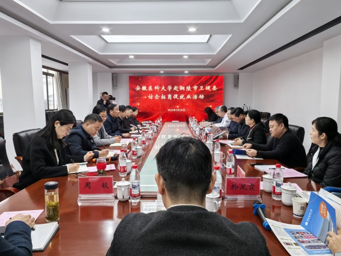 会上,铜陵市卫健委、市人民医院、市立医院、市二院、市三院、市妇幼保健院、市中医医院、市疾控中心相关负责人就本单位基本情况、人才队伍建设情况,以及人才招引、实习实践基地建设、毕业生就业等事宜展开交流探讨。